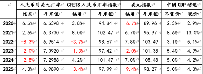 表1:人民币汇率、美元指数变化情况与经济增速