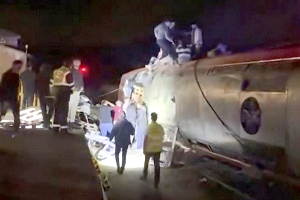社交媒体照片显示,1月18日,西班牙,列车脱轨后,救援人员在现场救援。