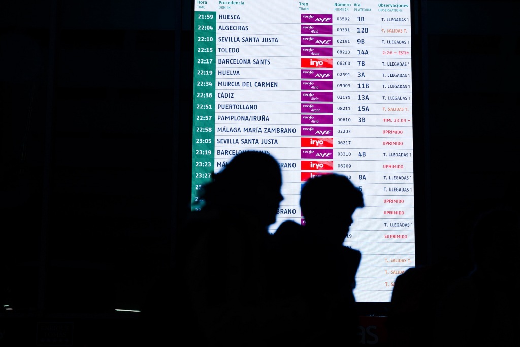 1月18日,西班牙马德里,马德里阿托查车站内显示屏。