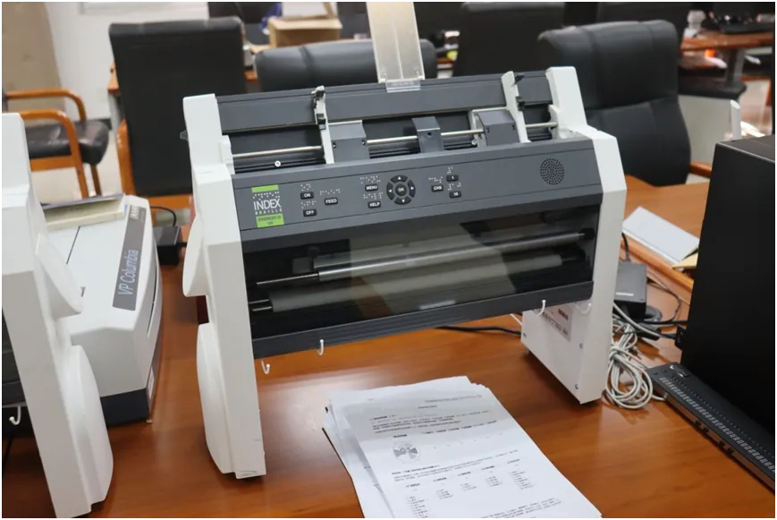 (南京市无障碍图书馆里配备的盲文刻印机,作者摄)