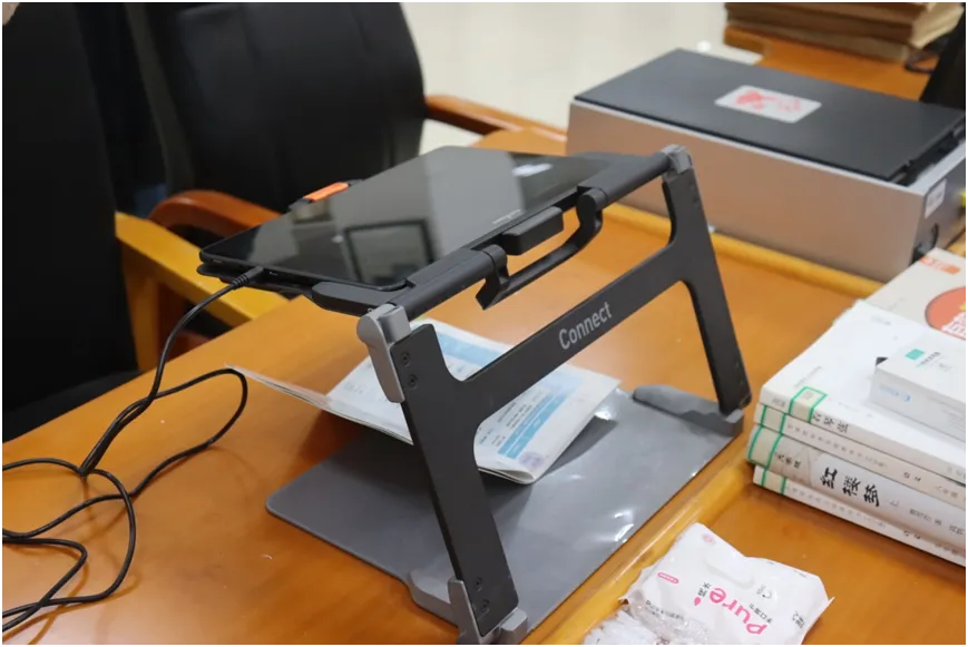 (南京市无障碍图书馆里配备的可多倍数放大平板,作者摄)