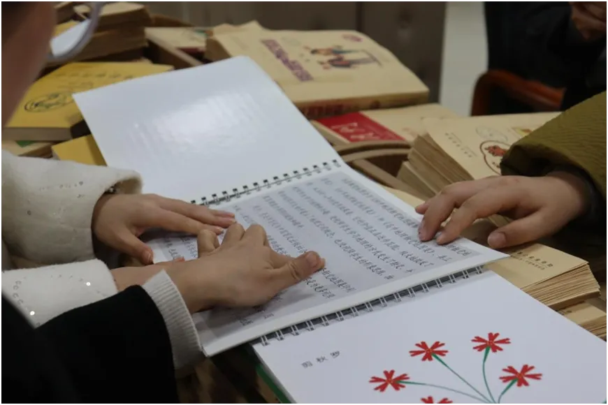 (南京市无障碍图书馆里的盲文教材,作者摄)