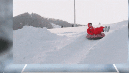拖着大雪圈爬上高坡
