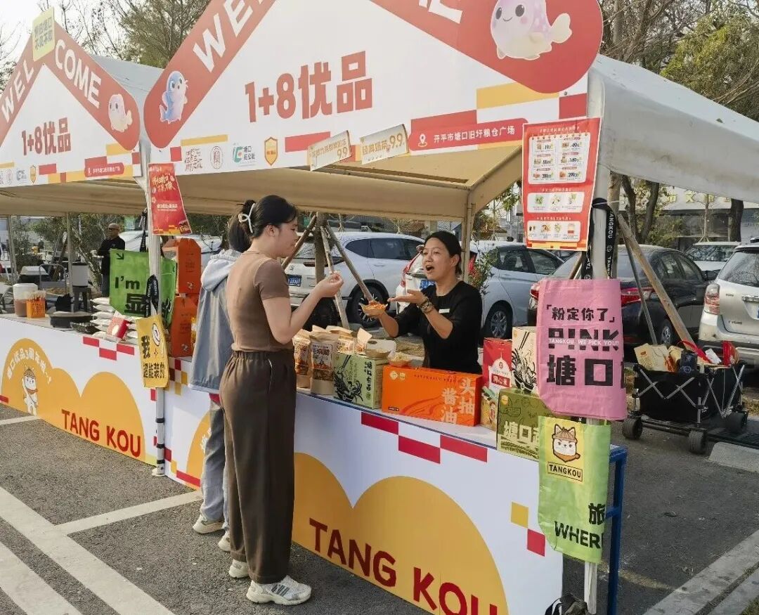 1月16日至18日,2026年塘口年货节特色市集活动暨塘口优品三周年庆在塘口天下粮仓停车场和塘口优品馆同步举行。这场集烟火气、文创味、仪式感于一体的多元盛会,为市民与游客打造了一场兼具物质满足与情绪共鸣的新春消费盛宴,更见证了“塘口优品”品牌三载耕耘的成长。活动由广东省第三产业研究会和开平市塘口镇人民政府指导,由开平市塘口优创旅游有限公司主办。