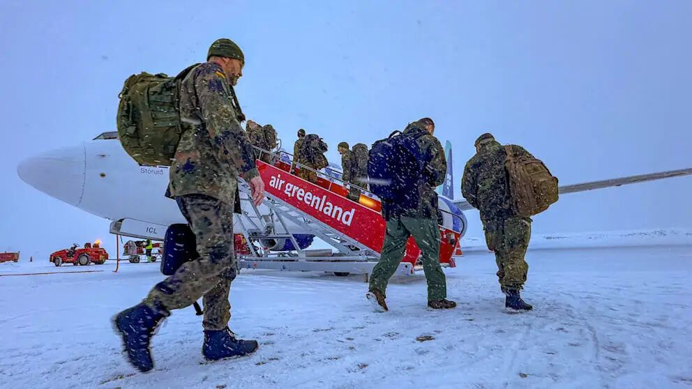 德国国防部最初表示,应丹麦要求,德国将于15日向格陵兰岛派遣13名士兵,随后又宣布将增派两名专家。这支由15人组成的军事小队最终于16日抵达抵达格陵兰岛,比原计划晚了一天。