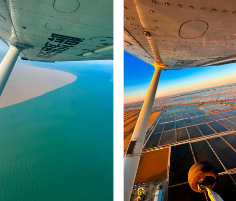 在孤东海堤打卡完还可以顺道去体验低空飞行,在黄河口航空飞行营地,河海交汇的奇景、如诗如画的湿地红滩都能在高空一览无余。