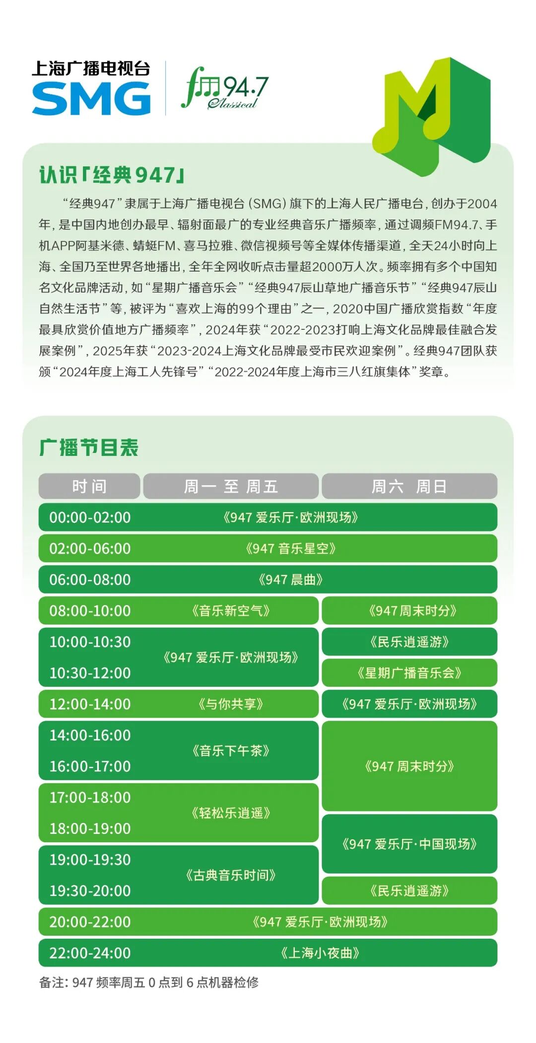 经典947(FM94.7)首播时间:每天20:00-22:00
