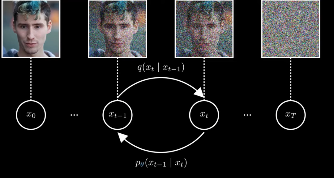 图4 扩散模型示意图。从左到右,前向扩散过程,熵增;从右到左,逆向生成过程,熵减。