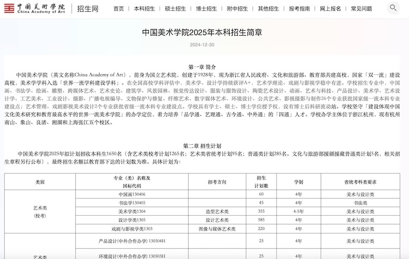 中国美术学院2025年本科招生简章