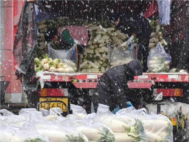 2026年1月17日起,今年首场大范围寒潮强势来袭,全国多地气温“断崖式”跳水,上海更在今日(1月20日)迎来降雪。为确保城市“菜篮子”安全高效有序运行,光明食品集团下属蔬菜集团积极组织基地蔬菜货源,加大从广东、广西、海南等地组织辣椒、娃娃菜、豆类等花色蔬菜,扩大市场周转储备规模,强化市场主要品种价格监测,并针对部分蔬菜品种实施手续费减免政策。近日来,市场交易平稳有序,1月17日至1月19日蔬菜成交23000余吨,同比增幅15.13%;猪肉成交近32000头,水果成交5400余吨。蔬菜集团透露,将持续密切关注气候及供求变化,从严从细落实保供预案,发挥“大市场、大平台、大流通”优势,保障寒潮期间的农产品供应量足价稳。