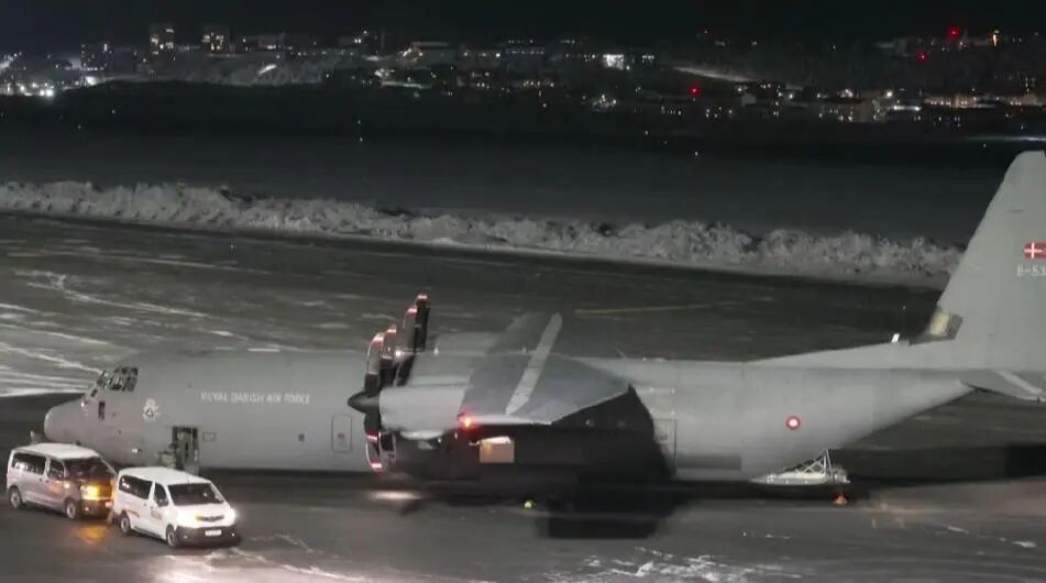 1月14日,一架丹麦皇家空军飞机降落格陵兰岛 视频截图