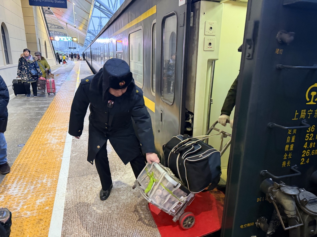 南京客运段徐京车队车队客运员帮助重点旅客搬运行李。 丁志庆 摄