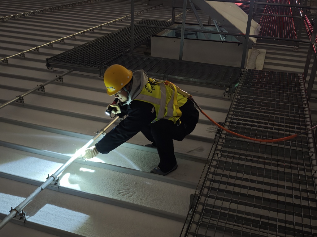合肥房建公寓段职工检查站房屋面屋脊盖板、防风夹、挡雪板等设施。 张成伟 摄