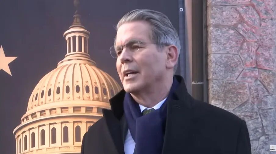 周一,贝森特在达沃斯接受采访 路透社视频截图
