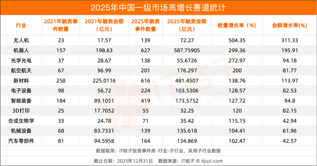 无人机504%的事件数增长、机器人587亿元的融资总额、新材料481亿元的资本涌入,这些数字背后,是中国制造业向全球价值链上游攀升的决心,是科技自立自强的战略选择,是新质生产力的现实写照。