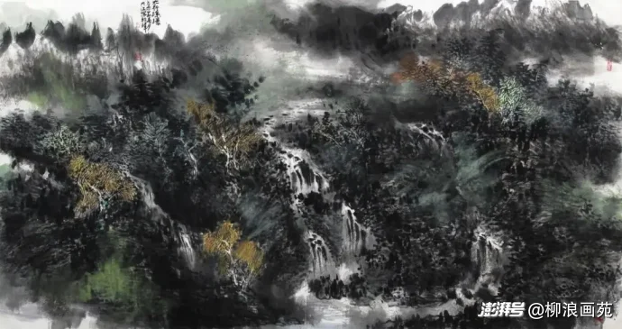 山顶、山脊、山坡: 是点簇的重点区域。用饱满的墨汁或色汁(如汁绿、墨青),以中锋或侧锋,依据山势和结构,密集地点缀。点的形状可以是圆点、横点(米点)、介字点、个字点等。