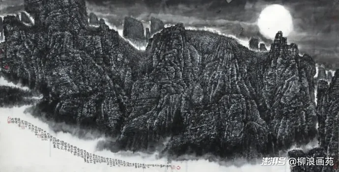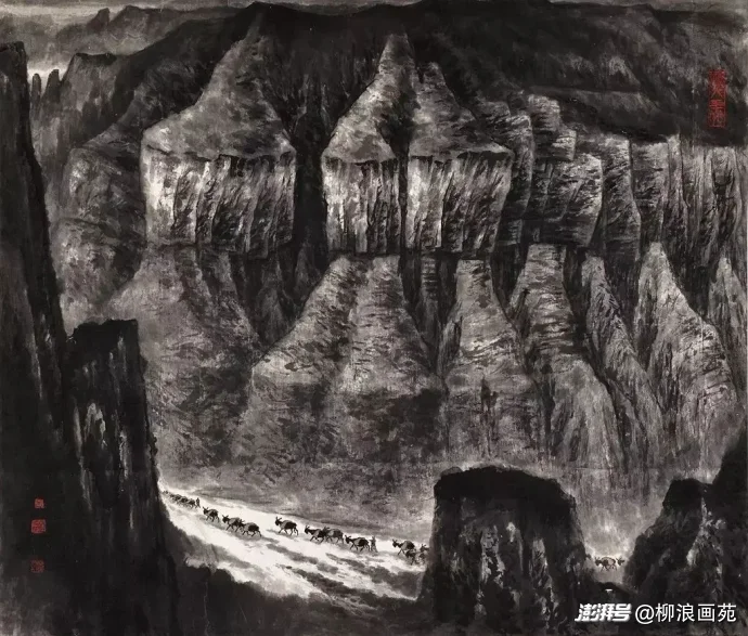 石青(偏冷的蓝青色)、石绿(偏冷的青绿色): 主要用于背阴面、山坳或岩壁的局部,增加冷峻感和岩石的质感。注意用量要克制,通常调得很薄(淡),或用干笔擦染的方式,避免鲜艳浮夸。太行画派(如吕云所)常采用积墨法(多次干笔皴擦叠加墨色)来塑造太行山的雄浑苍劲,本身就带有色彩倾向,再辅以薄薄的矿物色,更能体现其粗粝、荒寒、去草木化的特征。