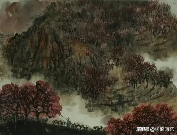 核心要点: 用圆润柔和的线条和皴法打底,关键在于密集、湿润、有疏密浓淡变化的点簇法表现满山草木,最后以薄而透明的汁绿罩染统一色调、增强滋润葱郁感。夹叶树点缀坡脚增加细节。