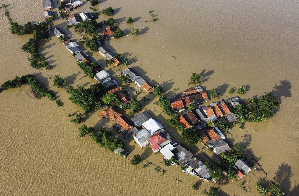 当地时间2026年1月19日,印度尼西亚西爪哇省卡拉旺县,村庄被洪水淹没。视觉中国 图