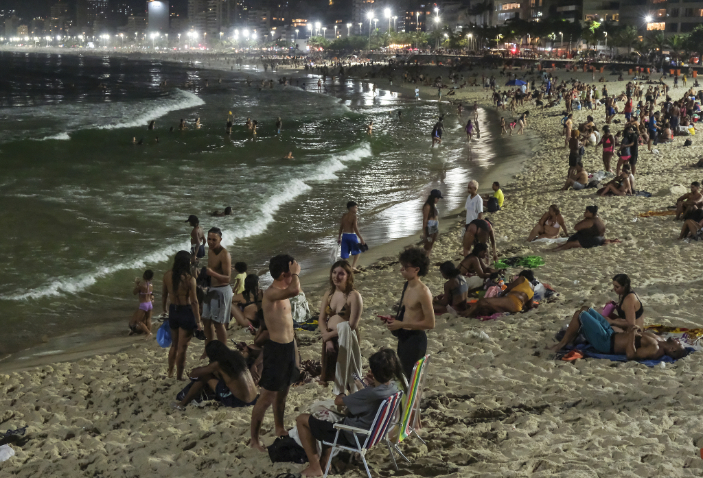 当地时间2026年1月13日,巴西里约热内卢,人们在阿普多海滩游泳。当日,里约热内卢气温高达41摄氏度,创下纪录,即使在夜间海滩也挤满了人。视觉中国 图