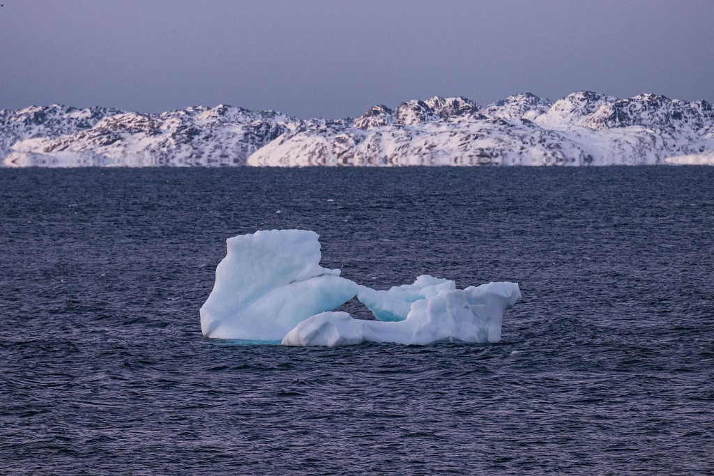 当地时间2026年1月20日,格陵兰努克,一座冰山漂浮在沿海水域。视觉中国 图