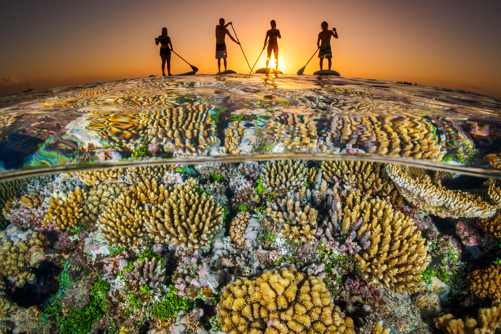 在汤加哈派,日落时分人们划船经过珊瑚礁。视觉中国 图