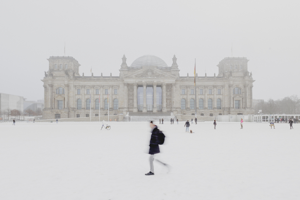 当地时间2026年1月13日,德国柏林,被白雪覆盖的德国联邦议院大厦。视觉中国 图