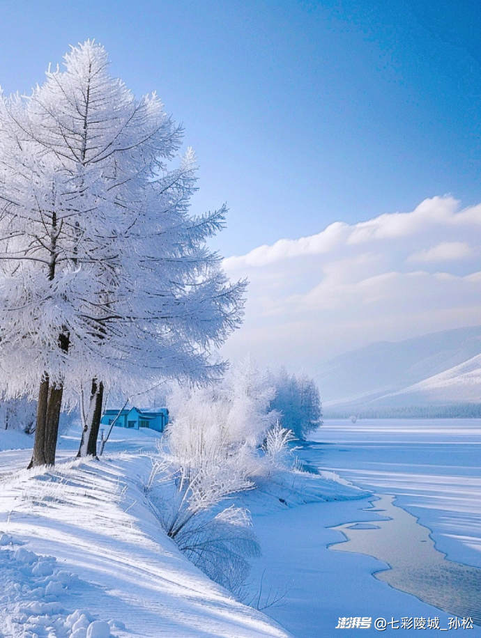 脚下的沙滩已覆了层薄雪,像撒了把细盐,踩上去发出“咯吱咯吱”的响声,像冬天在耳边小声哼歌。远处的海平面起初还笼着层青灰色的雾,像被谁蒙了块半透明的纱,可越往近处走,那纱便被风揉碎了,露出底下幽蓝的海水。浪头扑上岸时,不再像夏天那样卷着白沫,倒像端着托盘,托着星星点点的雪沫子,轻轻搁在沙滩上,又很快被新的浪卷回去。