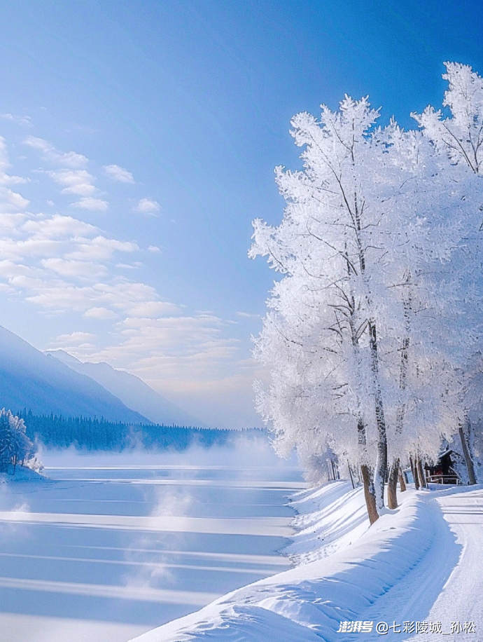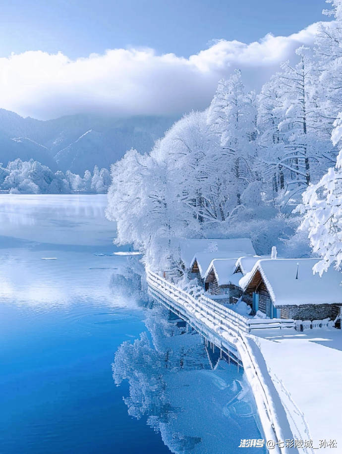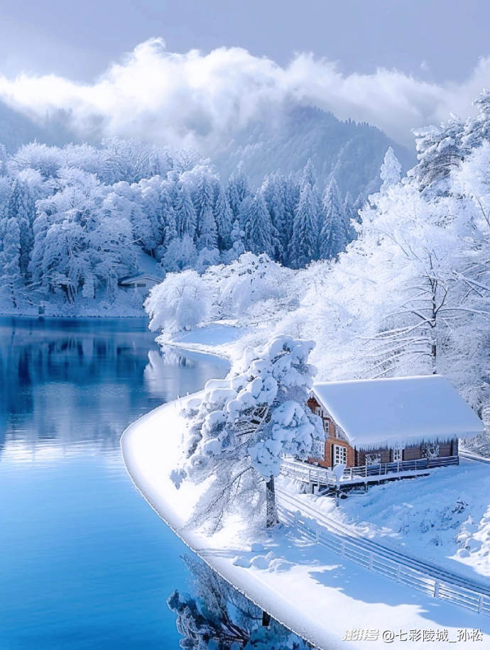 站在海边看久了,竟分不清是天上的雪落进了海里,还是海里的浪托起了天空的云。雪与海原本该是两种性子——一个沉静内敛,一个喧嚣奔放;一个素净苍白,一个幽蓝深邃——可此刻它们却交融得那样自然,像老友重逢,无需言语,只用一场雪的轻抚、一波浪的拥抱,就把冬天的故事写在了天地间。