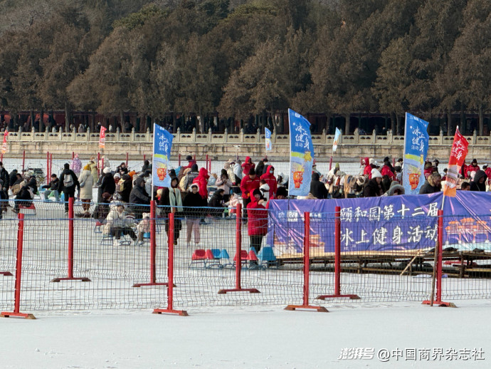 “抬眼是佛香阁,脚下是昆明湖冰面,这就是北京冬天的专属浪漫。”在颐和园冰场入口,游客正排队等候,“冬日限定体验”拉动了市场消费热度;凛冽的寒风也吹不散游客对这份独特体验的期待。这片被誉为“皇家冰场”的游乐场所,凭借古建与冰面相映的独特景致,成为京城冰雪打卡的热门之选。