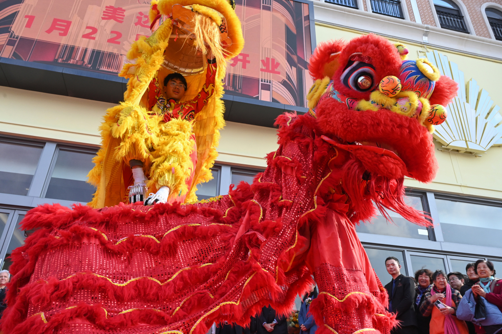 2026年1月22日,美达广场开业仪式上的传统舞狮表演。