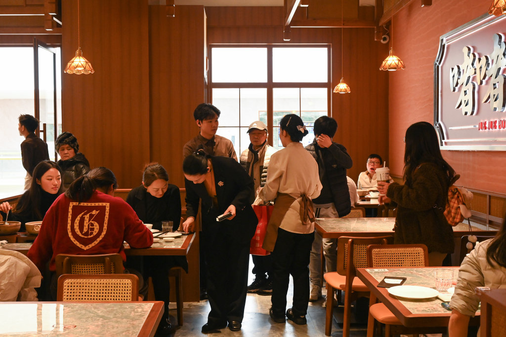 2026年1月22日,一家餐厅迎来了商场开业后的第一批顾客。孙小姐一家进门正在找位子坐下点菜。