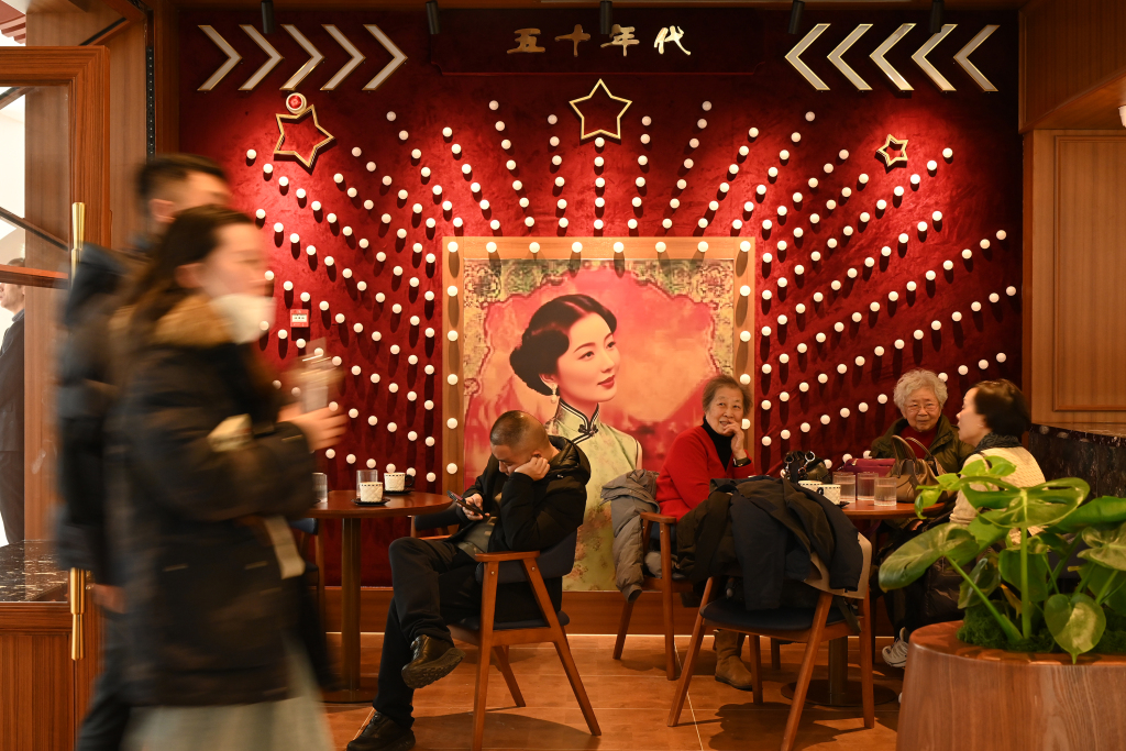 2026年1月22日,美达广场内的一家咖啡店设置了怀旧复古风情的装饰吸引顾客。