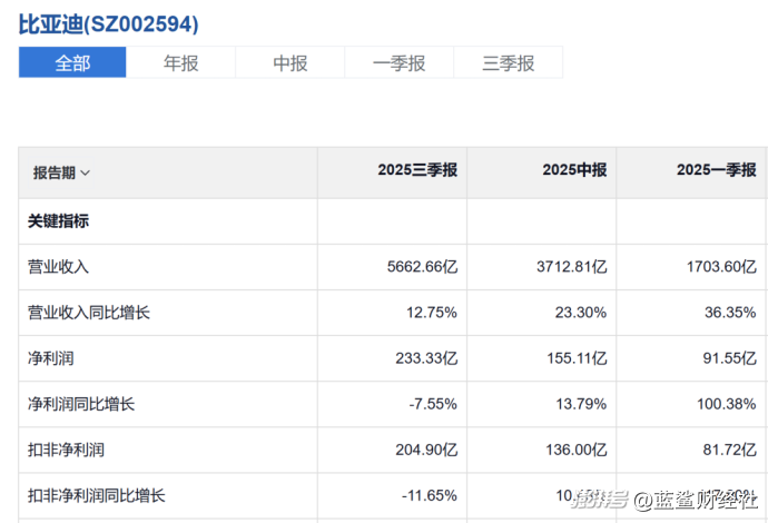 头部车企凭借垂直整合与规模效应实现稳健盈利。截至2025年三季度,比亚迪营收5662.66亿元,净利润233.33亿元,销售毛利率维持在17.87%的高位。