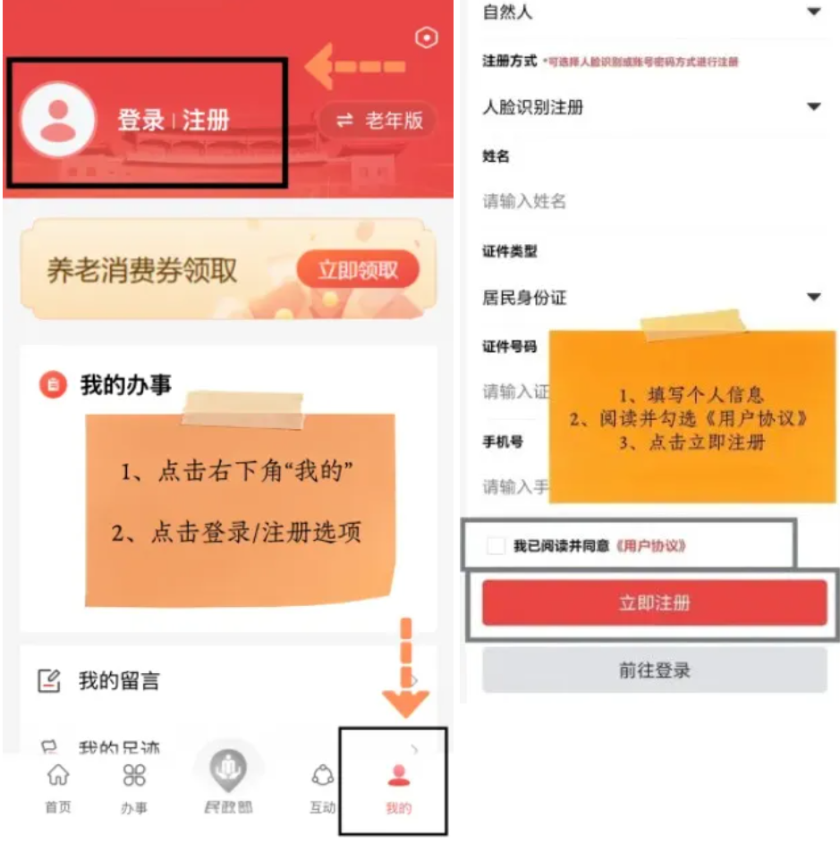 打开“民政通”APP或小程序完成注册,成功登录后,进入主页。