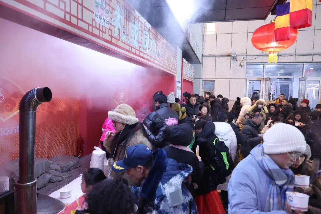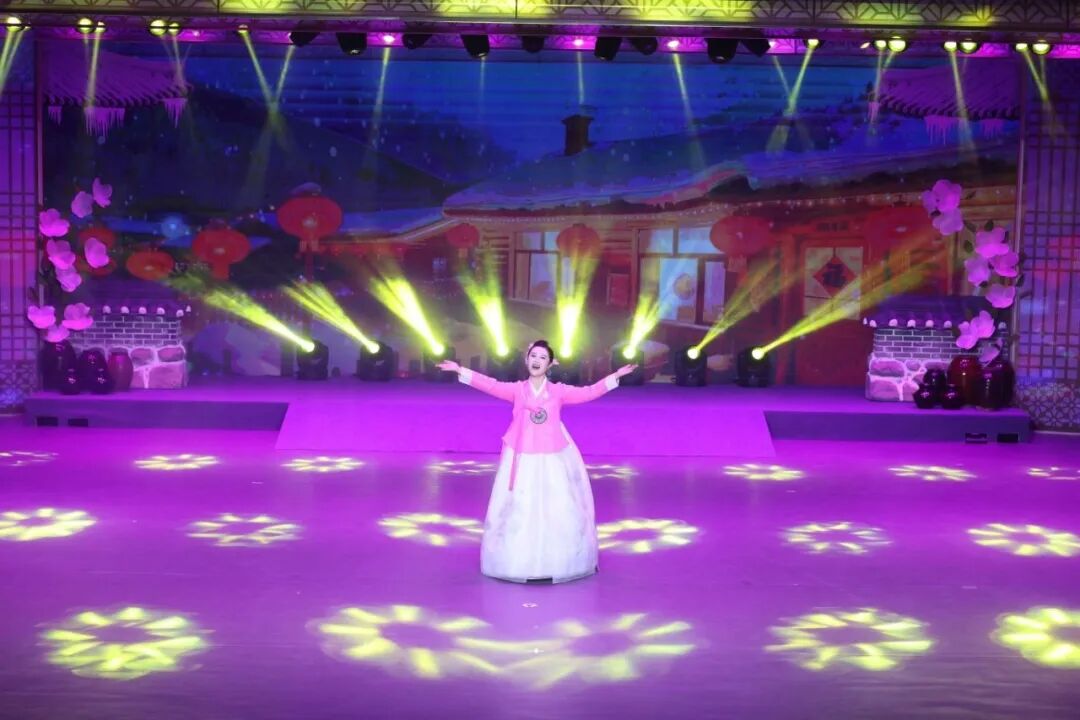 精彩的演艺结束,美食品鉴也热闹开启。热气腾腾的酱汤、炒年糕、参鸡汤等经典菜肴免费供宾客品尝,欢笑声与碗勺碰撞声交织成醉人交响,这场文化盛宴的“好味道”蔓延至舌尖、心里。许多观众感慨“在零下二十摄氏度的冬天,被这场文化盛宴暖‘化’了”“从未想过自己也可以成为民俗演艺的一部分,太有趣了”。