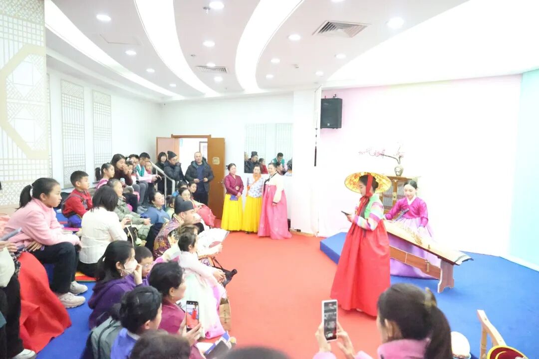 《礼成同心》是创新公共文化服务形式,在全市乃至全省范围内首家在公共文化场馆里打造的体验新场景。该演艺复刻朝鲜族传统婚礼流程,精心设计“吉时·迎亲”“盛典·大礼”“同心·共庆”三大体验篇章。