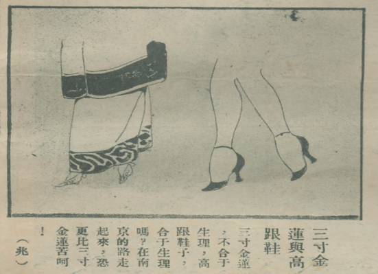 图3:《三寸金莲与高跟鞋》,《图画京报》1928年第6期。