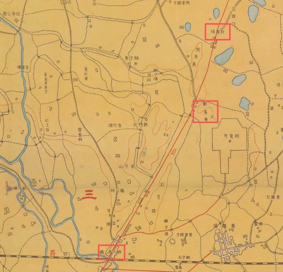 《成都市区地图》(1951)中显示出驷马桥、欢喜庵(阿桂祠)与将军碑位置分布