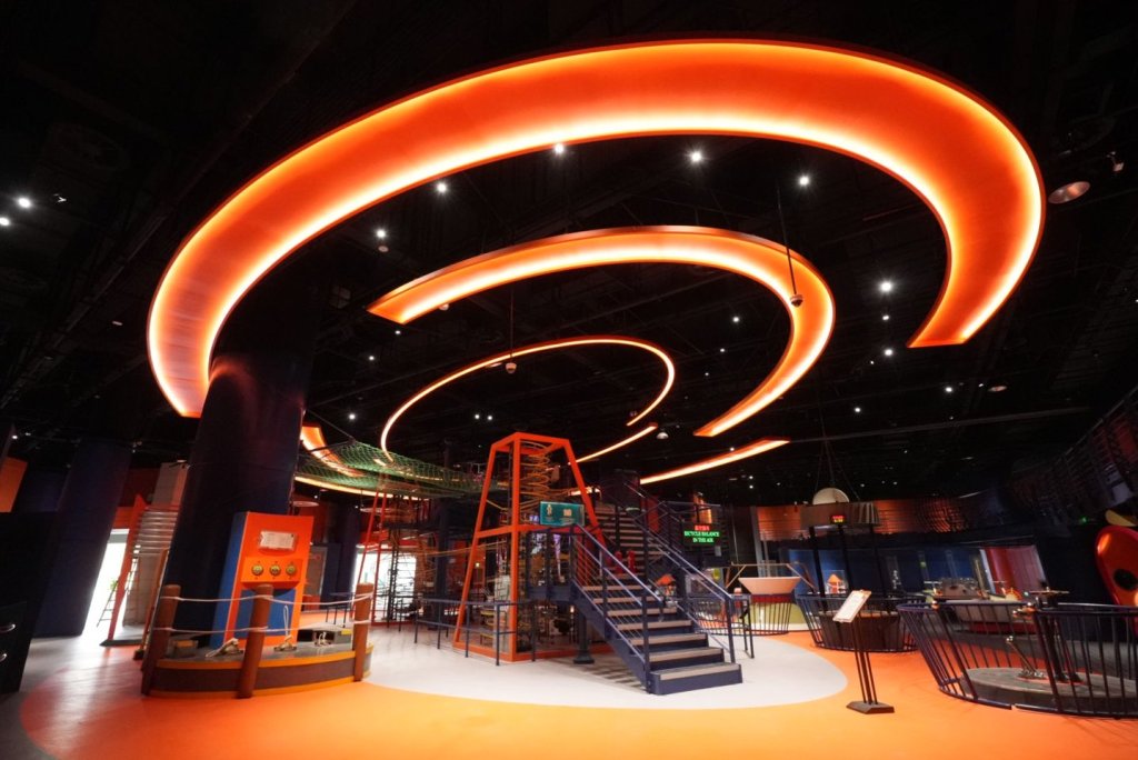 展示内容与观众体验上,更新后的科技馆实现在沉浸互动中感知科技前沿。本次改造整合了经典机电互动、场景模型、先进数字媒体、沉浸式交互场景等展陈形式,为观众呈现了405组多元有趣的科普展项,包含展品926件,其中展品互动率高达80%,展品原创率更是达到87%,让每一位观众都能在动手参与、沉浸体验中感受科学的乐趣与魅力。