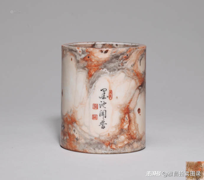 作为清代盛世的物质见证,唐英瓷器多数藏品为故宫博物院及世界各大博物馆馆藏,民间流通极少,市场认可度极高。例如2025年中贸圣佳三十周年春拍推出的“榷陶使者—唐英亲制私物与唐英督造贡御作品专场”实现100%成交,其中清乾隆 唐英亲制仿木纹釉开光设色山水诗文唱和四方笔筒以460万元成交;清乾隆 唐英制墨彩留白苍龙教子诗文荸荠瓶在北京保利拍卖2024春拍中以713万元成交。
