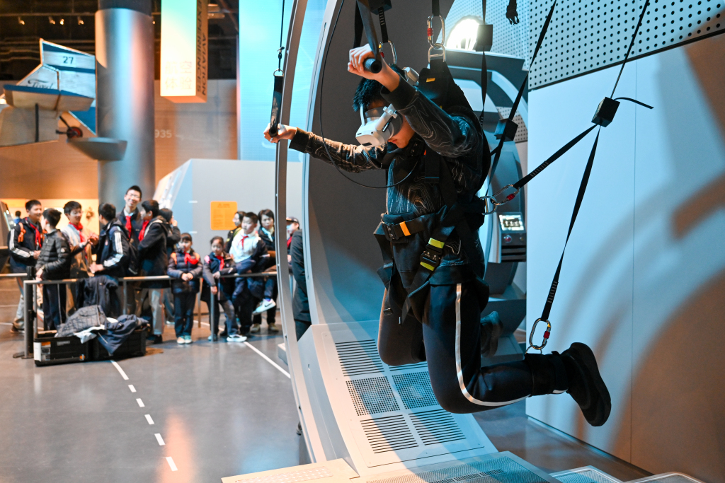 小朋友在体验“模拟跳伞”项目。澎湃新闻记者 朱伟辉 图