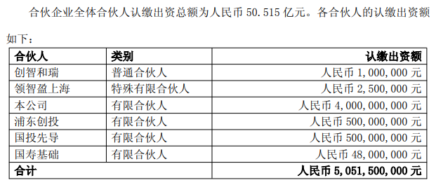 汇智长三角(上海)私募基金合伙企业存续期为10年,全体合伙人认缴出资总额为50.515亿元。其中,中国人寿认缴出资额为40亿元。国寿资本投资有限公司将作为合伙企业的管理人。