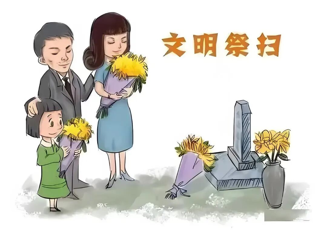 提倡文明节俭的祭扫新风,通过网络祭扫、鲜花祭扫、小规模家庭追思等新型方式祭奠先人,选择植树绿化、踏青遥祭、经典诵读等方式缅怀逝者,将追思缅怀逝者与弘扬优良家教家风有机结合起来,由实地实物祭扫转移到对逝者的精神文化传承上来,做社会新风的建设者,反对在公共场所搭建灵棚、撒纸钱扎纸人、大肆燃放烟花爆竹、在野外明火祭扫等不良行为。