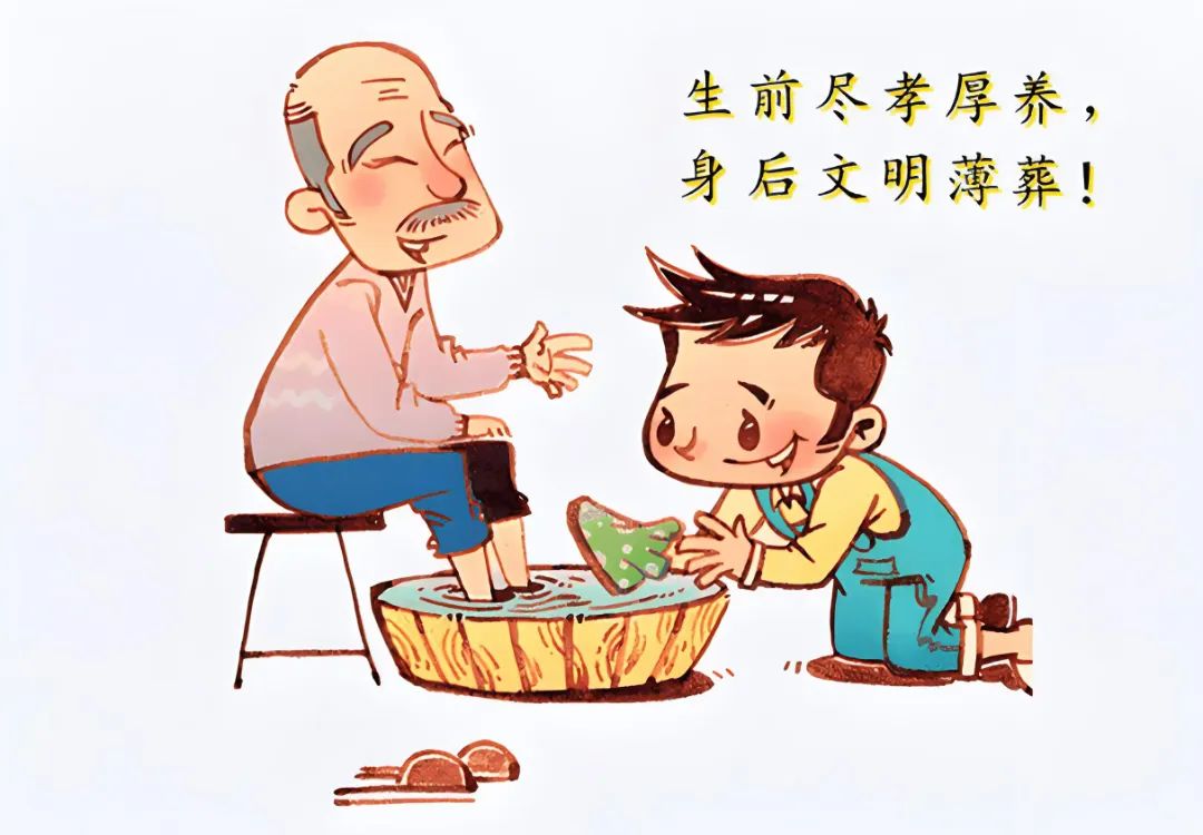 百善孝为先,要传承尊老、孝老、爱老的传统美德,自觉树立厚养薄葬观念。提倡子孙于老人在世时尽心尽孝,让其老有所依、老有所养、老有所乐,不在其身后事上讲排场、摆阔气。在办理丧事时,简化丧葬流程,不铺张浪费,抵制封建迷信,实行生态安葬,反对建造硬化大墓、豪华墓、“活人墓”。