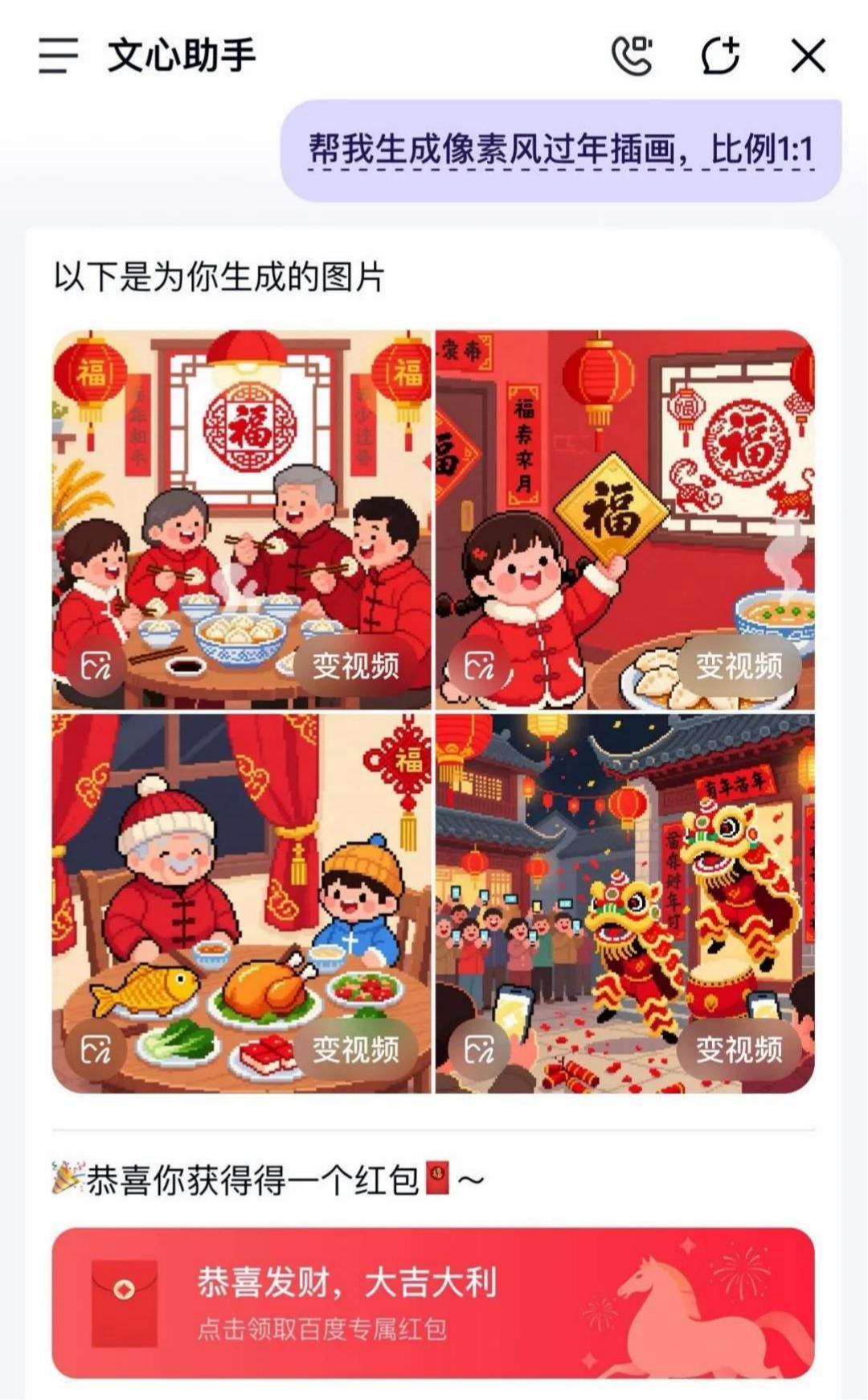 这是一次借助年俗的大众AI科普,也是大厂之间比拼肌肉的内卷之战,可以进一步让AI成为更多人的必备应用,并逐步成为部分用户的刚需或新的互联网入口。