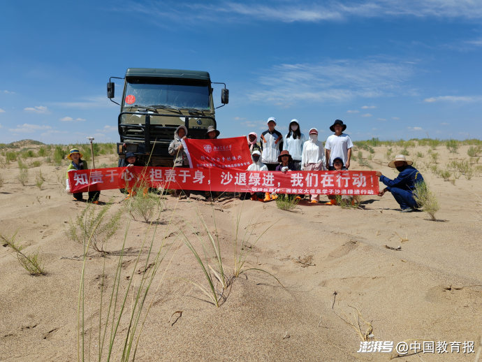 西南交通大学“沙退绿进”实践团在甘肃沙漠地区开展植被保护实践。 西南交通大学供图