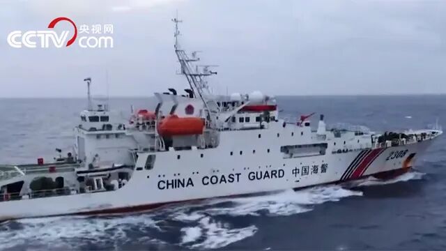 资料图:中国海警船在钓鱼岛附近海域执法 央视视频截图
