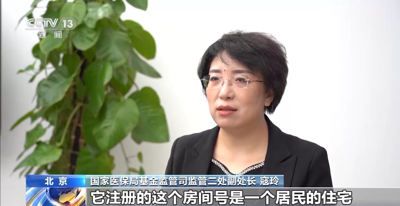 国家医保局基金监管司监管二处副处长寇玲:这家公司的注册地是在一个居民住宅区内,他注册的房间是一个居民的住宅,没有任何企业经营的状态。房主对这家公司是毫不知情的,对公司的实控人,法人也都不认识,检查组也到物业和街道办进行了调查,发现根本没有这家公司存在过。