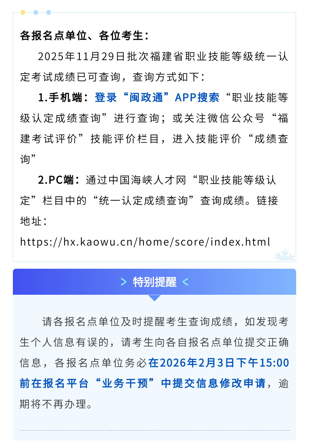 25年11月批次职业技能等级认定成绩公布啦!查询入口已开放,速速码住→